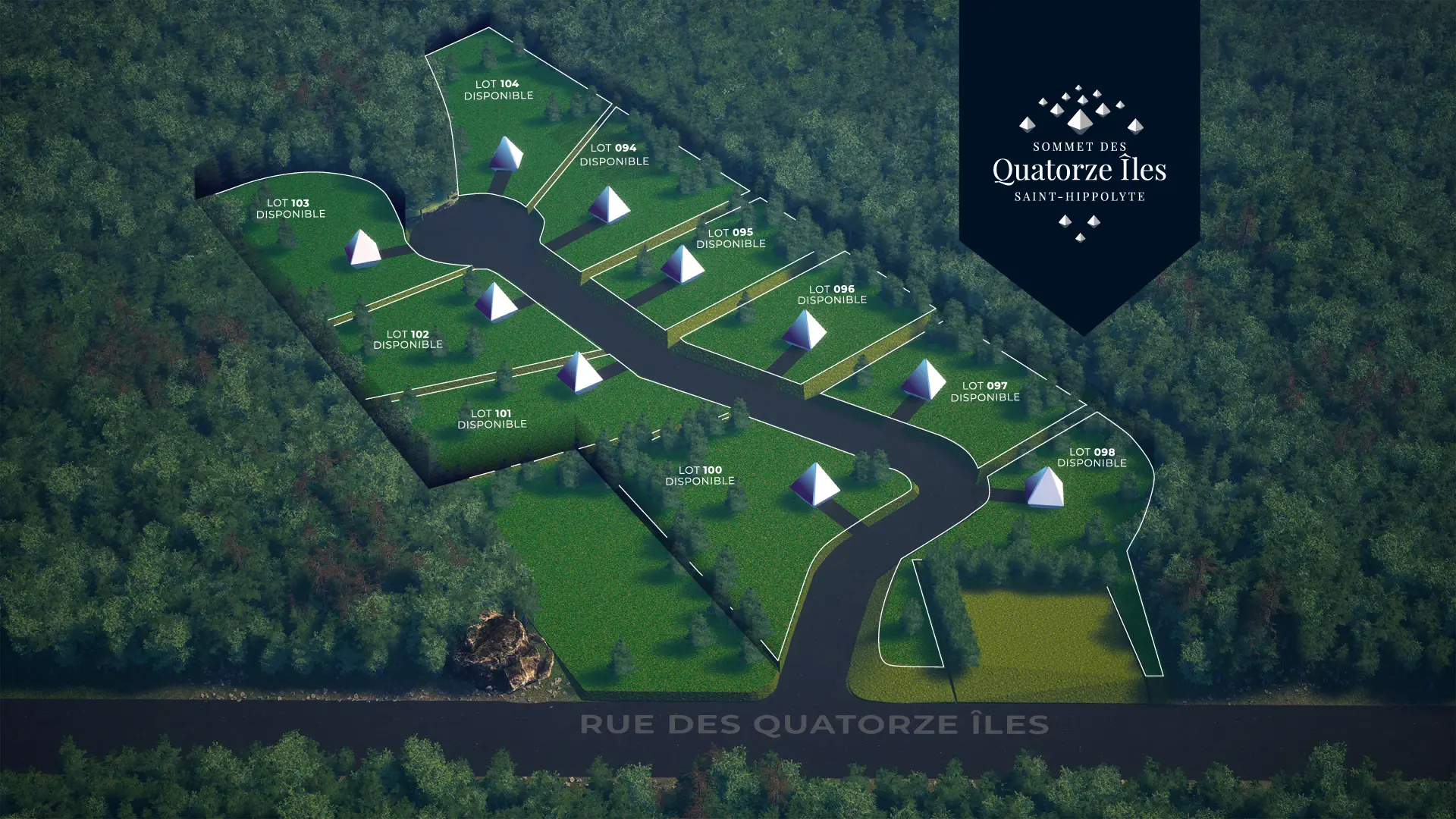 Prenez part à un nouveau développement résidentiel situé dans un secteur recherché de Saint-Hippolyte. Le Sommet des Quatorze Îles offrira de grands terrains boisés de 32 000 pi² et plus, aménagés sur une rue sans issue en montagne afin de proposer un environnement calme, intime et entouré de nature.